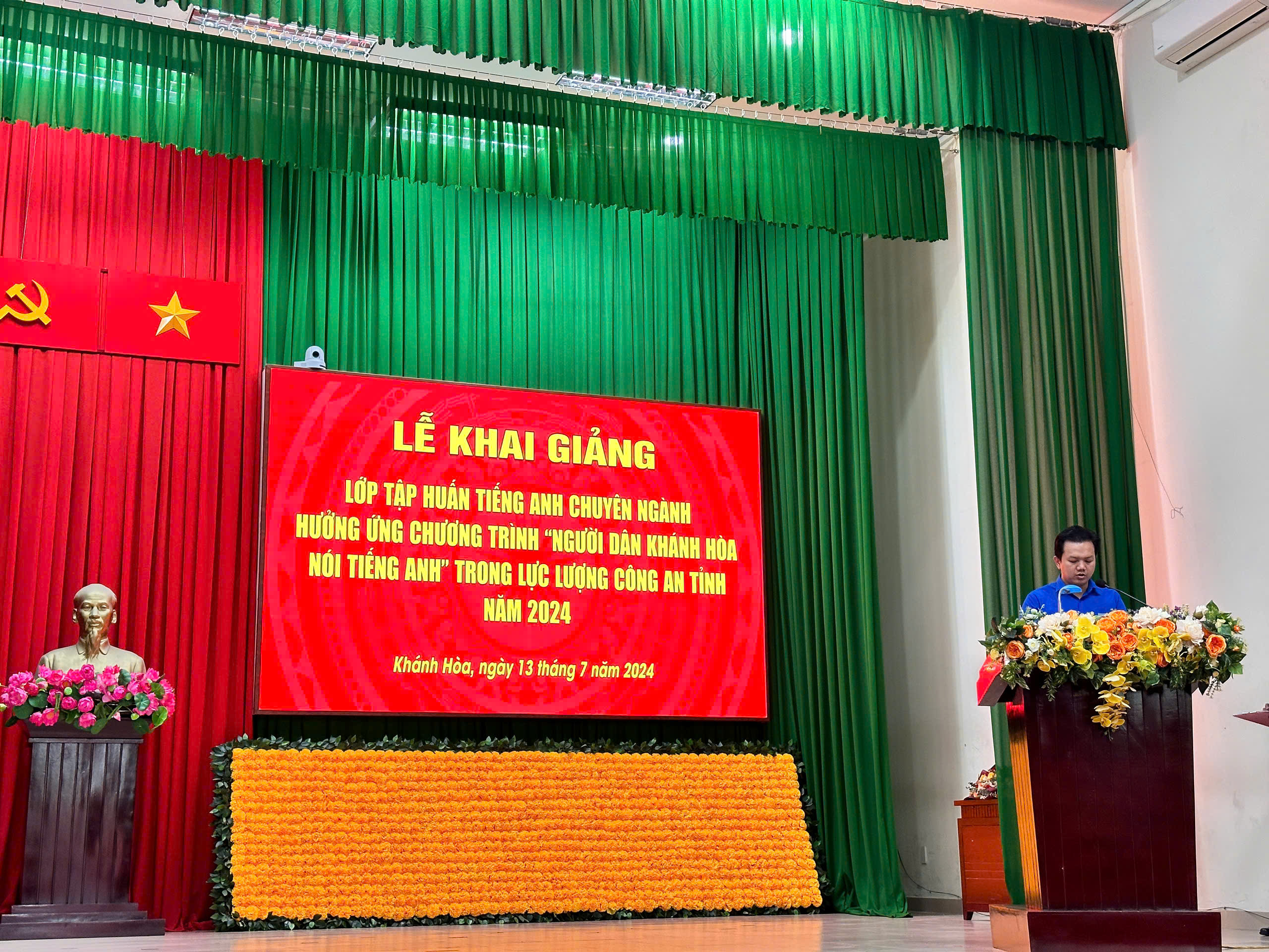 Ngày 13/07, tại trụ sở Công an tỉnh Khánh Hòa, lễ khai giảng lớp tập huấn tiếng Anh chuyên ngành cho gần 200 chiến sỹ công an đã được diễn ra một cách long trọng và trang nghiêm. Buổi lễ có sự tham gia của các lãnh đạo công an, đại diện các sở, ban ngành, và các chiến sỹ công an tham gia khóa tập huấn.